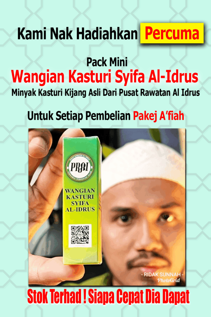 *PENAFIAN: Keberkesanan produk ini bergantung kepada kesesuaian individu. Setiap hasil dari penggunaan adalah berbeza bagi setiap individu. Produk ini akan memberi kesan terbaik sekiranya pengguna mengamalkan dengan cara betul berdasarkan banyak testimoni yang diperolehi. Kita berikhtiar, Tuhan yang menyembuhkan.
